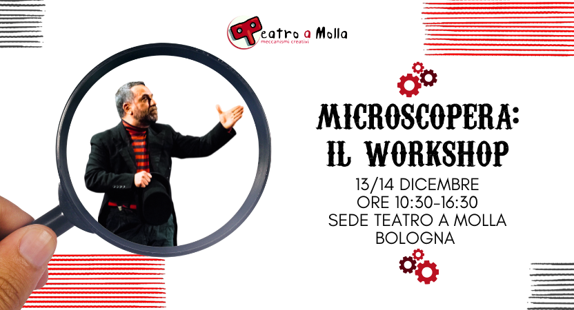 Microscopera: Il workshop Un laboratorio dedicato agli improvvisatori che vogliono esplorare le tecniche narrative e sceniche alla base di MicroscOpera, lo storico format di Teatro a Molla creato da Antonio Vulpio. Un percorso che unisce meta-teatro, costruzione di mondi “in miniatura” e relazione con il pubblico, trasformando la scena in un microcosmo vivo, mutevole, [...]